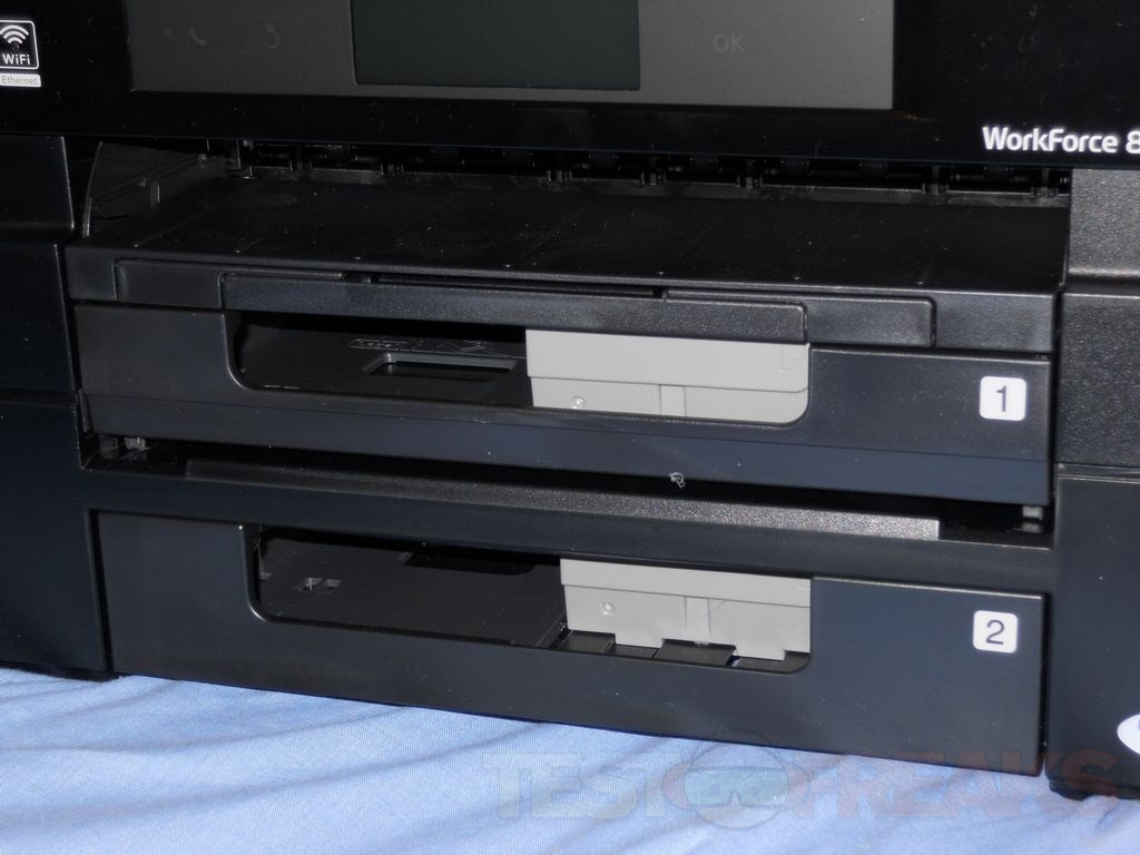 Below the return tray you’ll find two paper trays that can hold a total of 500 sheets of paper.