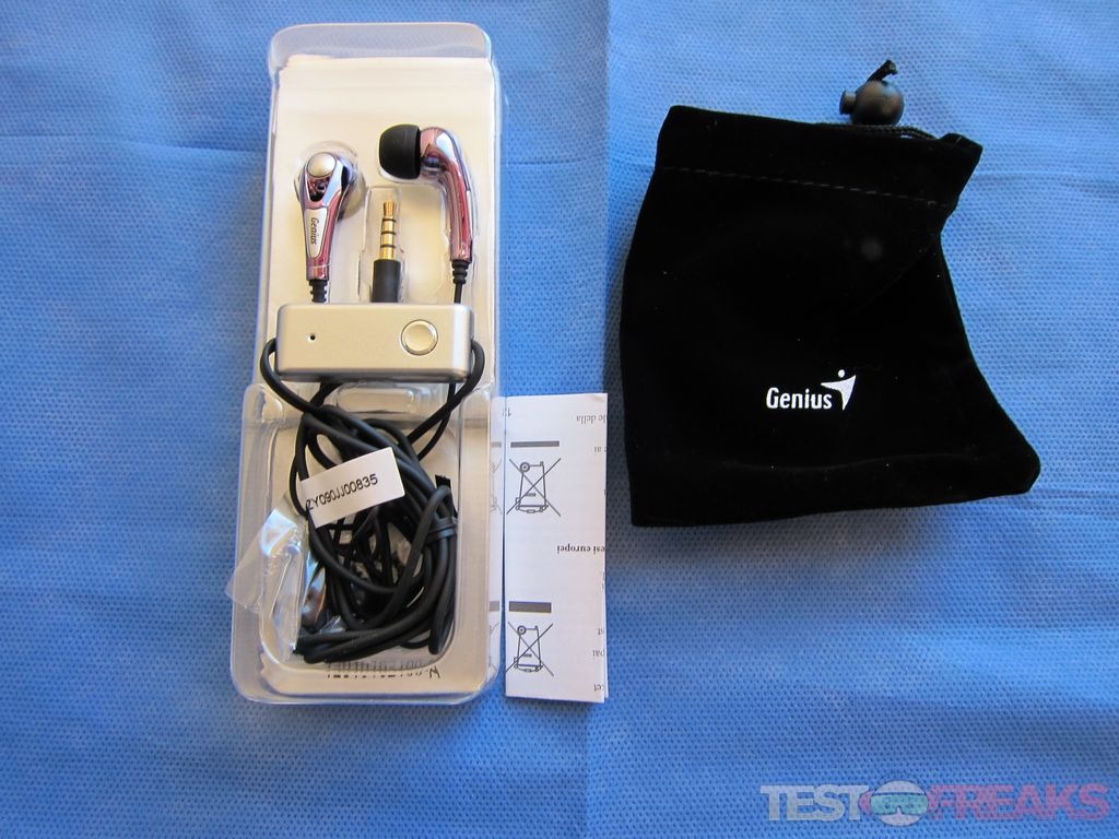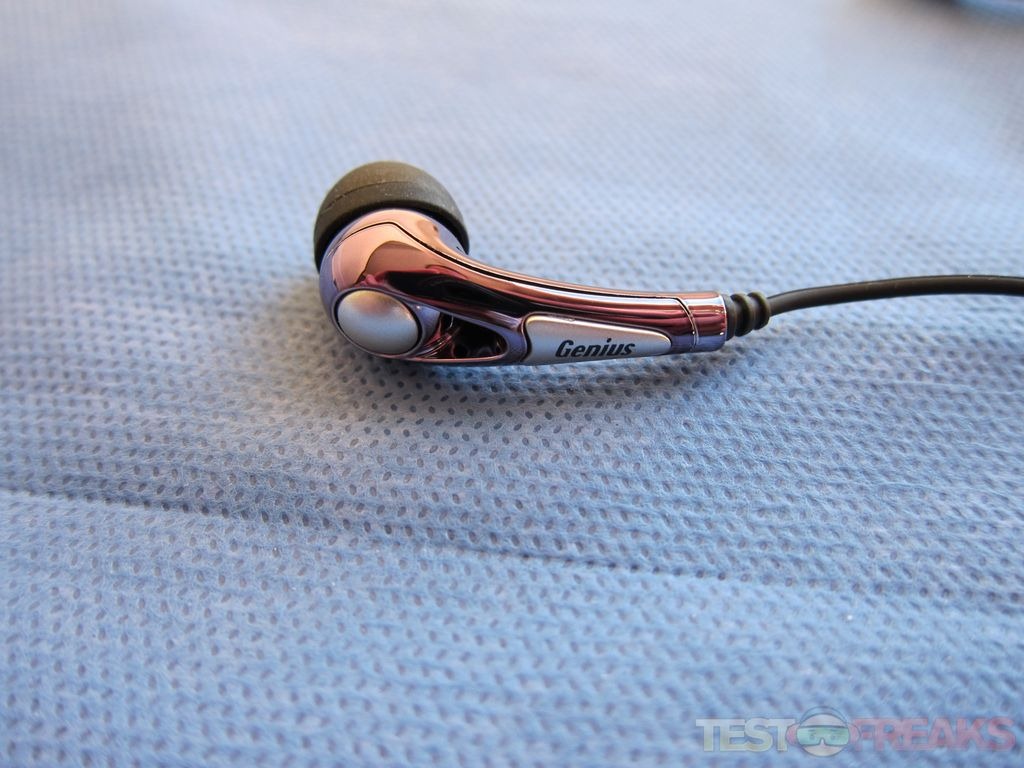 The HS-200 Gold is fairly standard in appearance; it is encased with a black rubbery cable covering and has platinum colored housing adjacent to the ear pieces with the Genius logo found on the outside.
