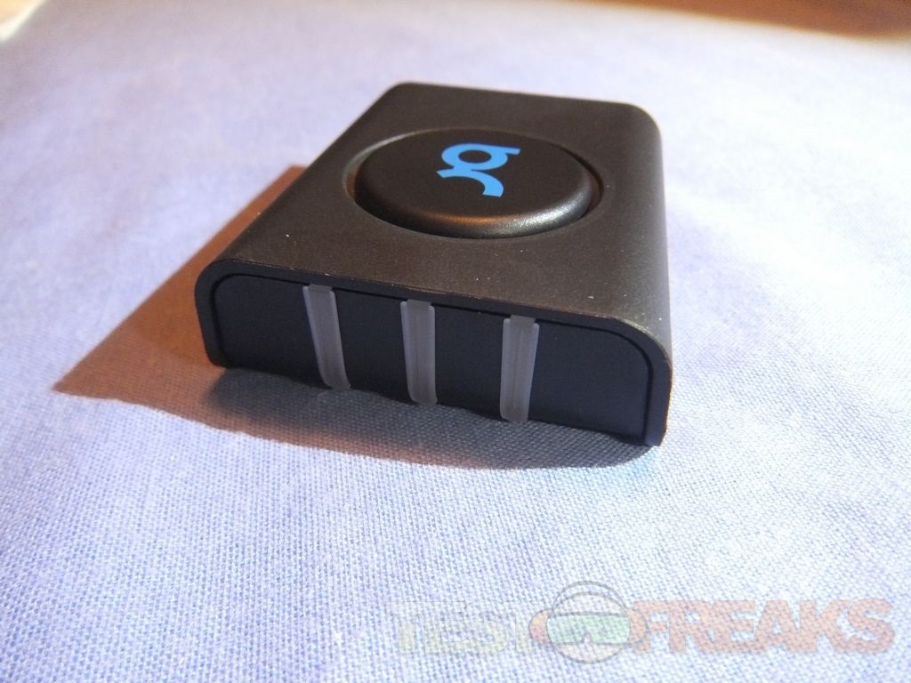 The 3Play is small with dimensions of about 2” x 2.25” x .75” and of course it’s made of plastic. On the top you’ll see the Grace Digital logo on top of the multifunction button.