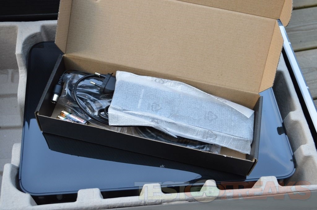 To the left you’ll see a thin box containing the remote, power cable, 3 AAA batteries, a HDMI cable, FM radio antenna, two booster antenna for WIFI and airplay plus a microphone device which is used to setup and test the system.