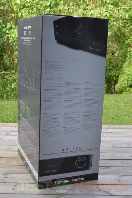 Unpacking the BDS 880 is a major task, allow yourself at least 30 minutes for this, and do it at a leisurely pace, you don’t want any accidents. Inside the gigantic outer box (weighing over 30kg), you’ll find two smaller boxes – one containing the Blu-ray / amp unit (the BDS580), and the other the speakers and sub (HKTS65).