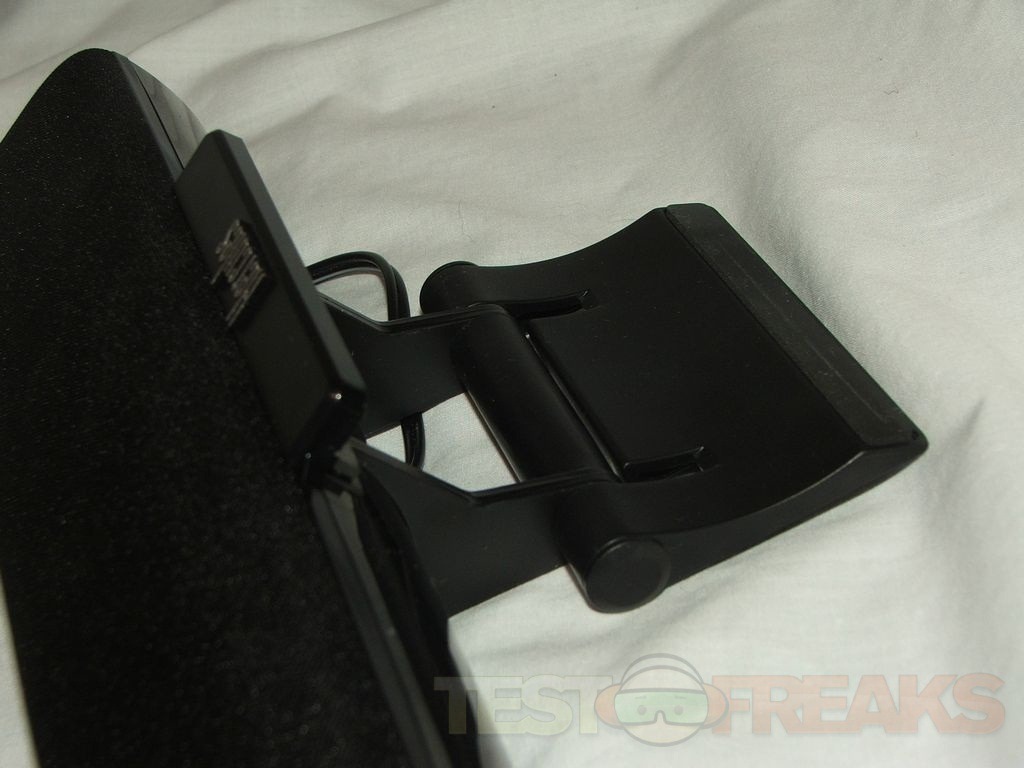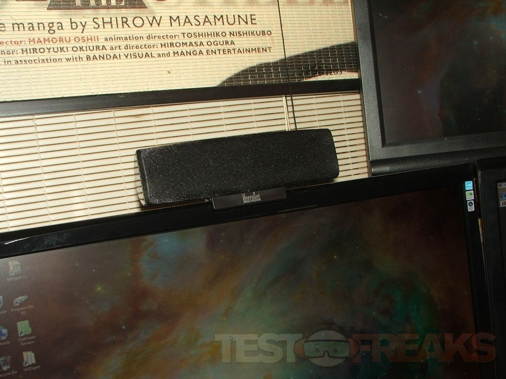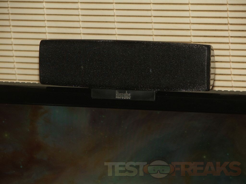 The center speaker is made to sit right on top of your TV or monitor. On the back side you’ll find an adjustable clamp of sorts with rubber pads on it.