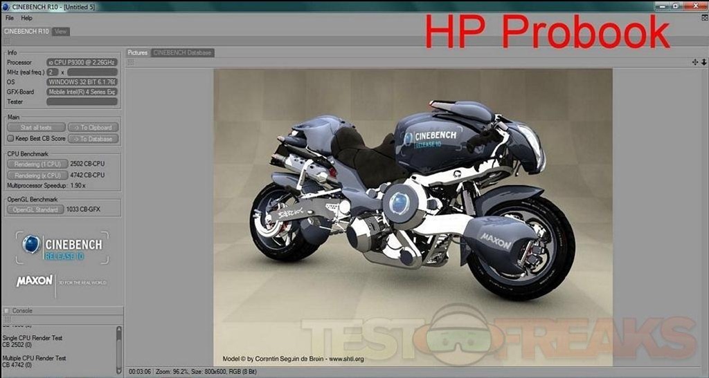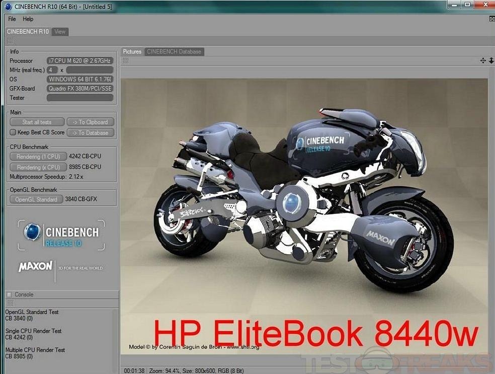Then I figured I’d run Cinebench 10 to test the basic graphics capabilities of this laptop.