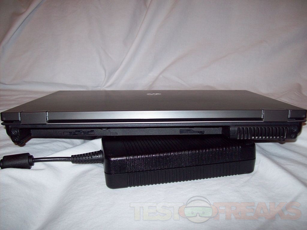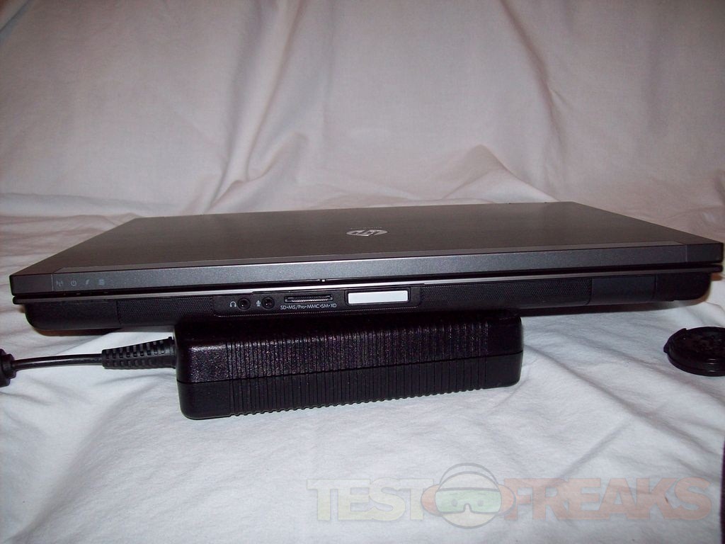 This is a review unit that I got, so it did not come with CDs or manuals, but it did come with the power supply and battery. The power supply is a huge and heavy brick. The laptop has a very nice brushed metal top which is a actually a magnesium alloy.