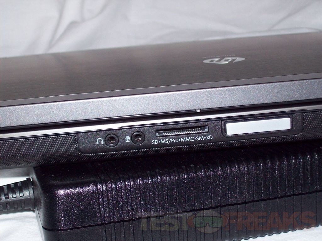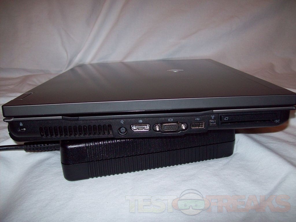 On the left side is the Kensington style lock, vents, power port, Displayport, VGA, USB 2.0 and Firewire. There’s also a smart card reader and express card slot.