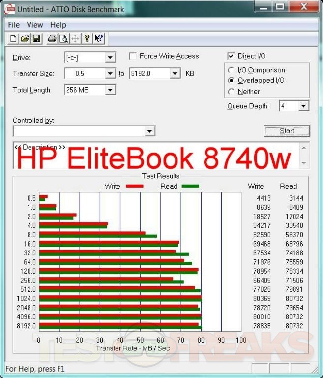 Going to start with testing the hard drive using ATTO Disk Benchmark: