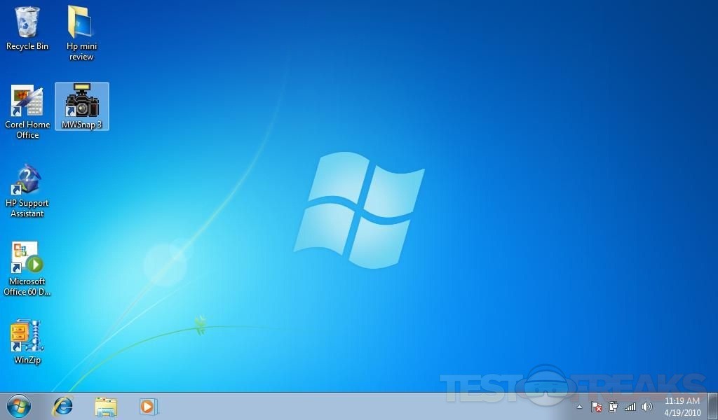 The boot time for the HP Mini Executive isn’t too bad, a little over a minute to get a usable desktop. On the desktop you don’t find that much actually, which is nice. The HP mini review folder and MWSnap are what i added. It’s running Windows 7 Starter edition. IT comes with a trial of Microsoft Office, but included is Corel Office Suite.