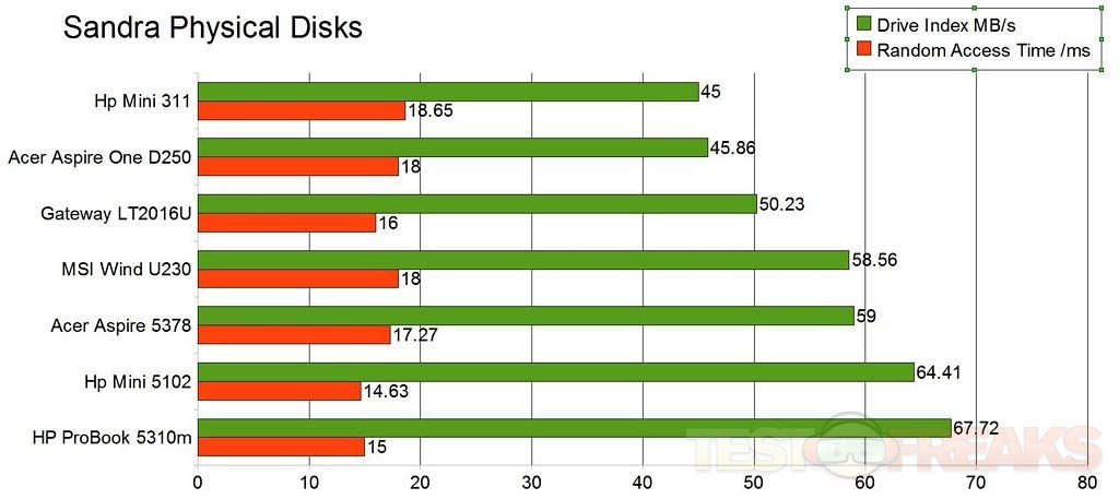 According to this test, the Hp Mini 5102 comes in second right behind the HP ProBook, there’s a nice fast drive in there.
