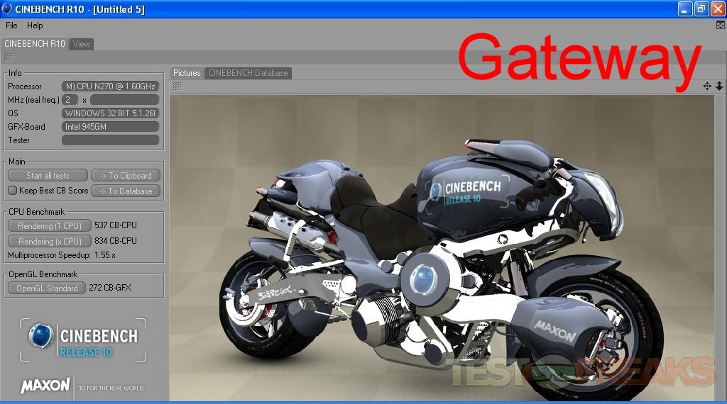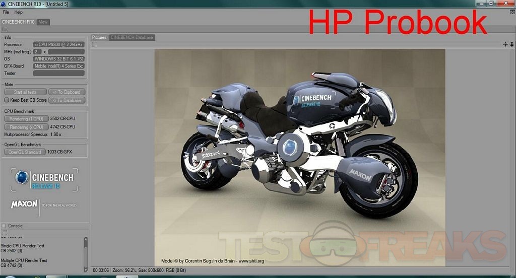 Next is Cinebench 10. It tests two things, the CPU and the Graphics, we’re just focusing on the Graphics test: