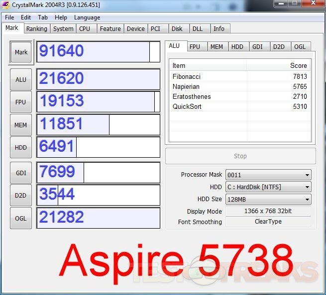 Results for the Acer Aspire 5738