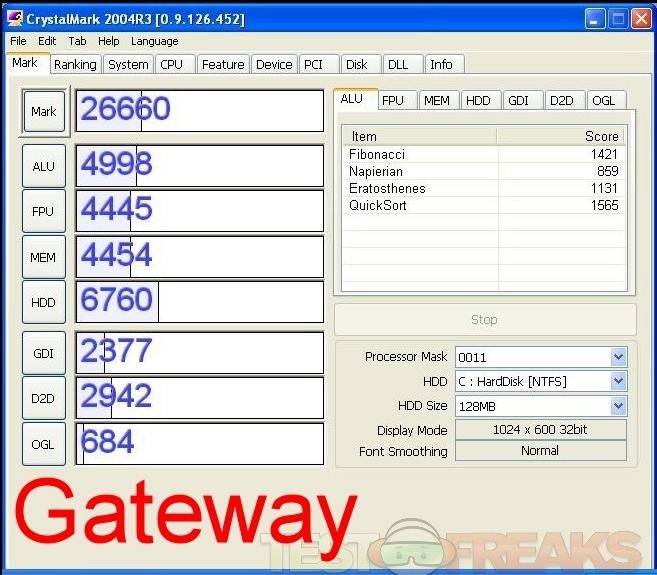 results for the Gateway LT: