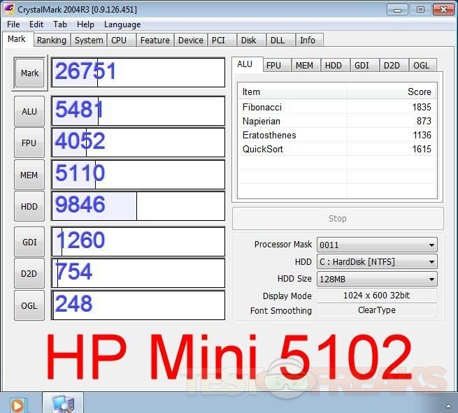 Here again we see the Mini 5102 coming in second place in terms of HDD performance.