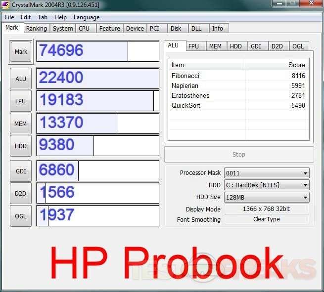 Results for the Hp ProBook 5310m: