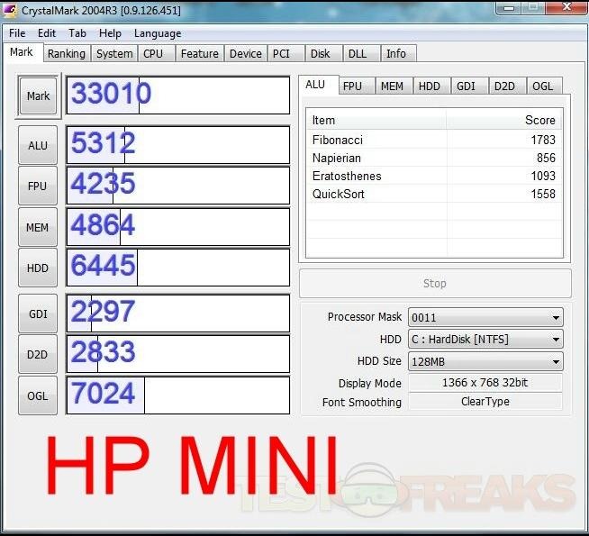 Here we see the HP Mini 5102 scores fairly low, the reason is of course the Intel Graphics Chipset. The HP Mini 311 with the Nvidia Ion performs a lot better.