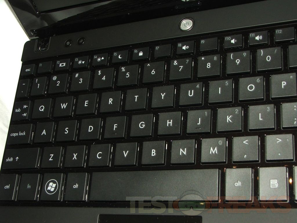 As I said the Mini 5102 looks just like the ProBook on the outside, but it on the inside as well, meaning the keyboard looks just the one on the ProBook. This keyboard is 95% size of a regular keyboard making it nice and large. It’s also spill resistant and it features HP DuraKeys that have a clear coating on them to protect the finish and so you won’t wear the letters off form use. There’s also two shortcut keys to the top left of the keyboard. You can actually touch these keys when the computer is off, like pressing the globe key will launch a web browser in a few seconds without actually loading the operating system.