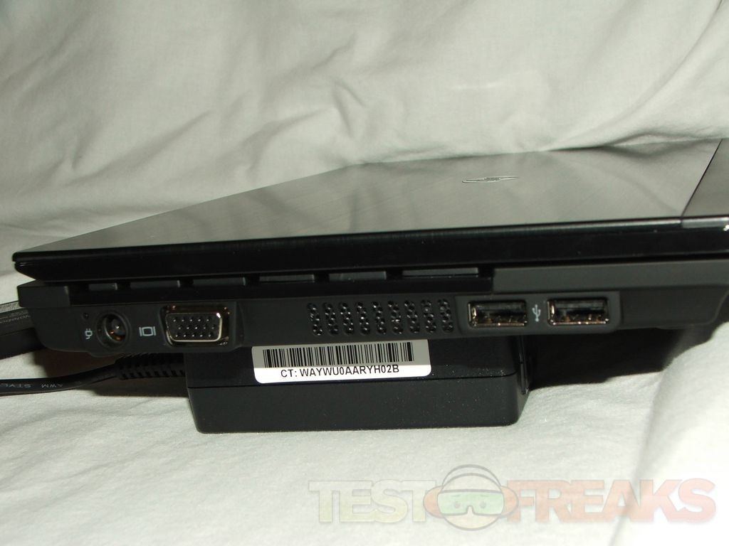 On the right side we have connections for power, VGA and two USB ports.
