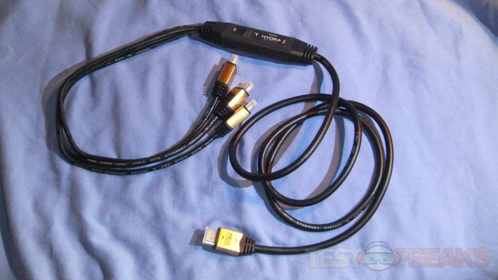 Overall I like it a lot and it works but there are two things I would change about it. The cables aren’t numbered, so you don’t really know which cable is for which switch number until you start turning things on and pushing the button. The three cables are too short I think, at least for my uses. It would be nice if they were longer to reach were you need it to and still be able to access the switch easily. One way to fix this problem would be to use female HDMI connectors on the Hydra, this way you could use your existing cables and just connect it that way so there would be no need to worry about the overall length. Using your own cables will also let you pick the length you need for your system, as is now with the Hydra you’re kind of stuck having to keep the three things you want to use close together in your system.