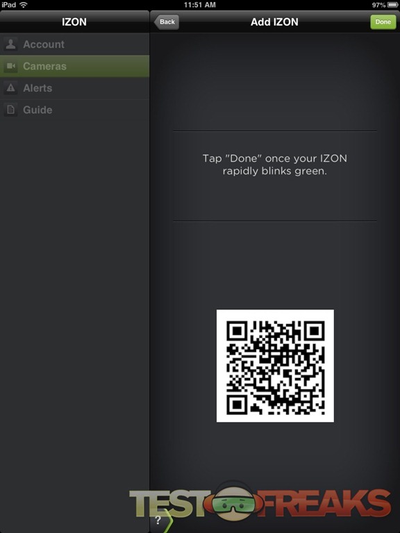 Use the app to create a unique QR Code with information about your Wi-Fi network. With firmware v2.0, the IZON camera can scan the code, and get connected in just a few minutes. It’s that simple.