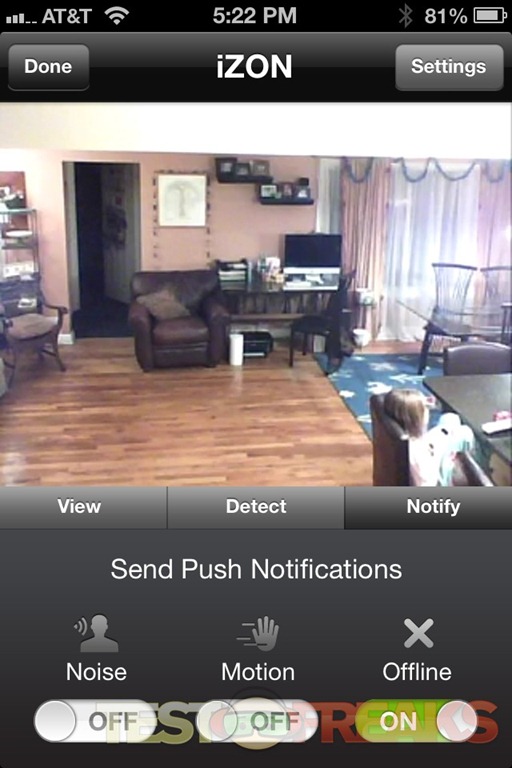 The alert sensitivity can be controlled via sliders within the app to keep your iOS device from constantly going off with alerts. Besides motion, IZON can also detect sounds at levels from 35 dB to 95 dB.