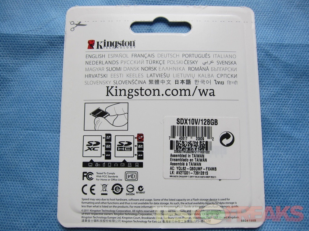 The Kingston SDXC 128 GB arrives on a Kingston branded cardboard with the device found in the within a clear plastic blister card. The back lists the compatibility table for the SDXC memory card. Surprisingly Kingston does not provide a plastic carrying case for this memory card.