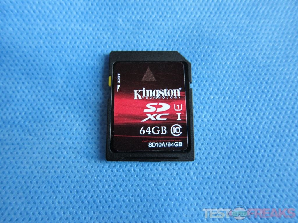 The Kingston SDXC memory card only comes in one capacity – 64 GB which is room for a lot pictures and videos. The physical card looks no different than a standard SD card. It is composed of black plastic with a red Kingston label on the front. Since this is a class 10 card it will have a minimum transfer rate of 10 MB/sec.
