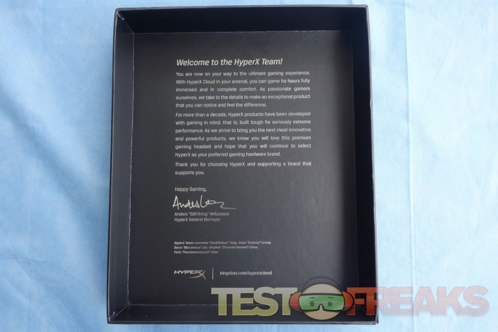 The inside cover of this black box is a greeting from the HyperX General Manager – Anders “G8V1k1ng” Willumsen.