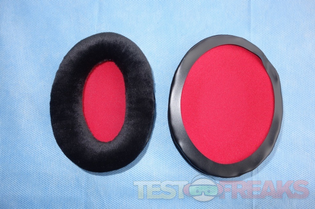 Memory foam, the same material used for mattresses is incorporated on the ear cups to provide a comfortable wearing experience. These cups are covered by synthetic leather. If you find these cups uncomfortable or too hot, there is an additional set of velour ear cups that can be swapped in place of the default ones.
