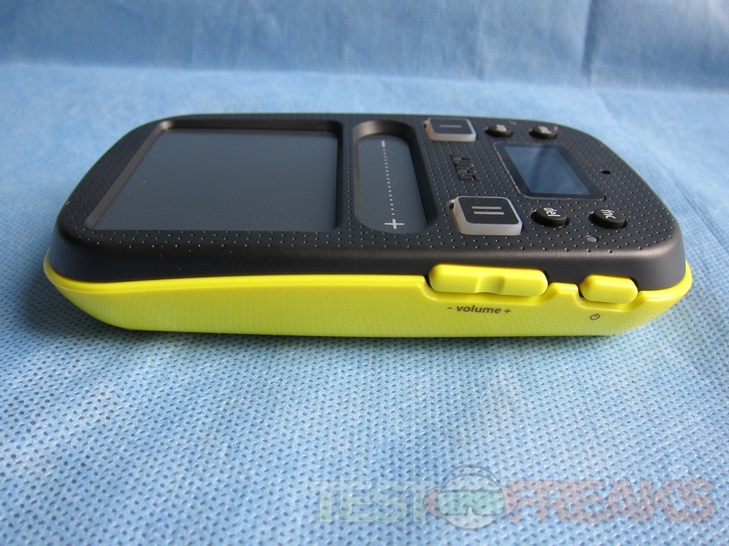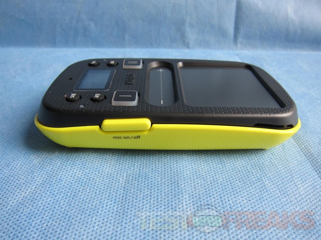 On the lower left-hand side of the device is the internal speaker with the microphone on/off button for capturing audio through the internal mic or from an external one connected to the MIC IN jack. On the right-hand side of the unit are the power and volume buttons while on the top are 3.5 mm jacks for headphones and microphone along with a DC 4.5 V input.