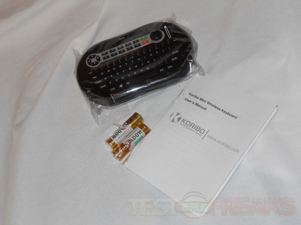 Keyboards are an integral part of our life and they come in many shapes and sizes and some have specialized uses. A little bit ago I was contacted by a new company and they asked me to review a few of their products, specifically wireless keyboards. Today for review I have a small and unique little keyboard from Koribo just called the Mini. It very much reminds me of a gamepad, it has a full keyboard, many special keys, a joystick for controlling the cursor and a touch sensitive slider for scrolling. It uses two AA batteries that are supposed to give you about three months of use. This little keyboard is perfect for an HTPC setup surely or just anytime you might need a little wireless keyboard.