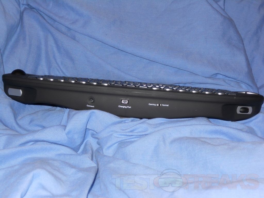 On the front edge you’ll find a single button on the right side where the trackball is, this is your standard left mouse button. In the middle is the connect button, USB port and a Gaming/Normal switch (not sure what that’s for exactly..). On the left side, where the two mouse buttons are, you’ll find the scroll wheel.