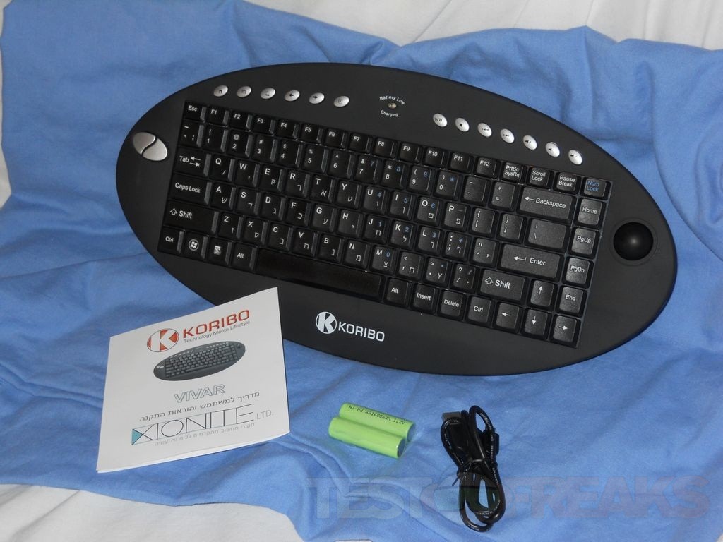 Today for review I’m back with the final of three wireless keyboards from our friends at Koribo. This one is called the Vivar and it features a trackball as the mouse along with thirteen multi-media keys, scroll wheel and two sets of mouse buttons to round it all off. It has a nice soft rubberized surface to make sure you keep your grip, and all the while it provides you with the comforts of a full-sized keyboard.