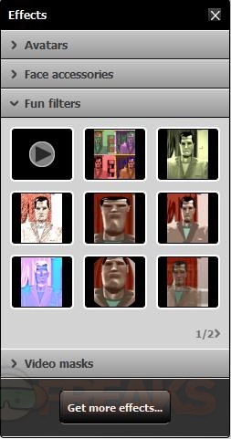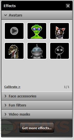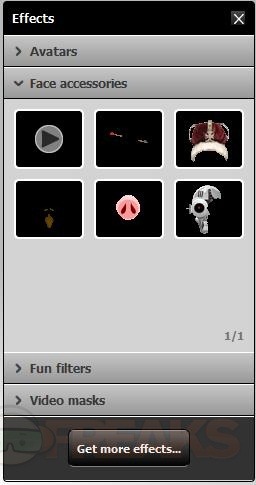 You can switch the control over to Effects for Avatars, Face Accessories, Fun Filters and Video Masks.