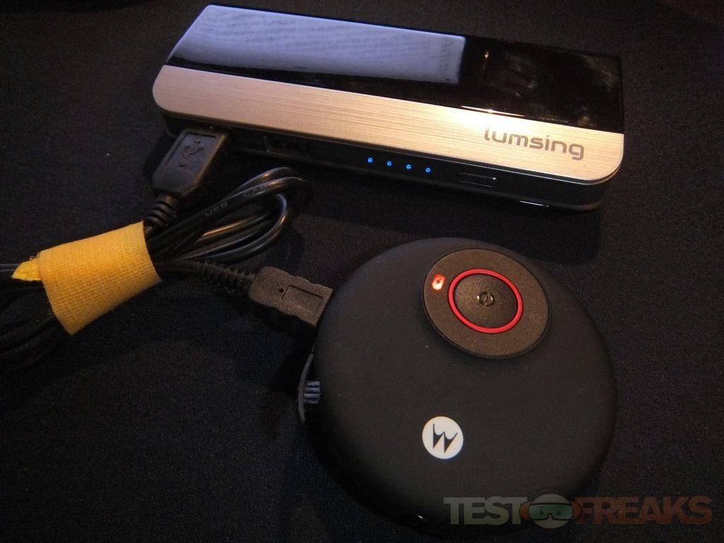 To test the battery I charged a few things like my HTC One cellphone, Motorola Bluetooth GPS and my Joby Blade rechargeable flashlight. I charged all of them to full and when done with all three I still had about 75% capacity on the Lumsing. Yes all three of the devices weren’t quite dead, but they were used. The phone was about 75% capacity, and I’m not sure about the GPS or the flashlight as neither have a battery level indicator on them. The use the battery you need to press the button to begin charging your devices, some batteries start charging automatically, but with the Lumsing you must press the button.