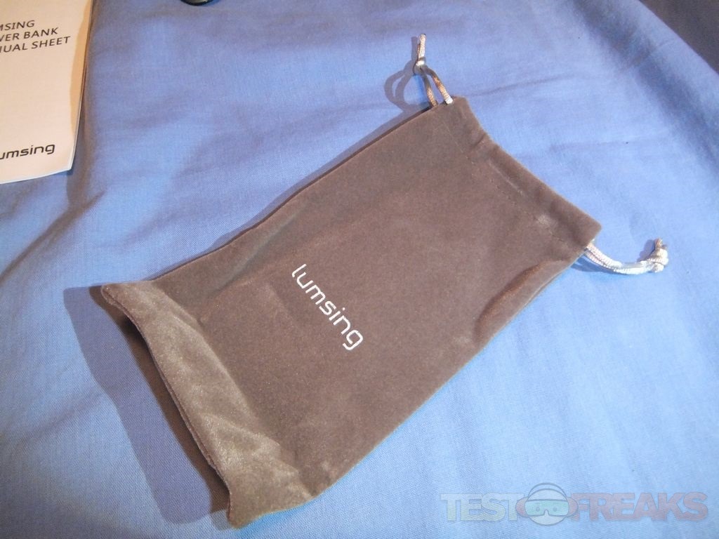 Aesthetically the Lumsing 10400mAh battery just looks great, it has a glossy black finish with silver accents that just makes for a nice presentation overall. Lumsing included a cloth carrying bag to help protect it while you’re on the go.