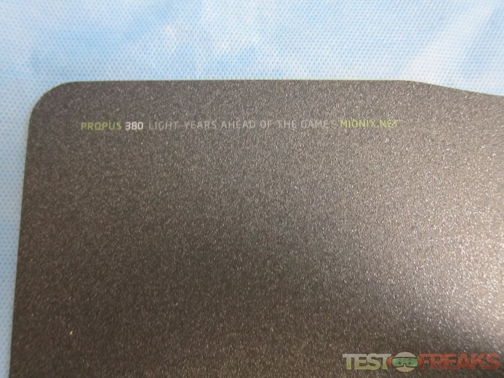 Looking at the Propus 380 you will notice silvery flecks over the black mouse surface giving it an outer space style appearance. According to Mionix this silver material is supposed to improve mouse tracking. Mionix placed their logo on the bottom right and their website address on the top left of the pad, otherwise the majority of the Propus 380 is the silvery flecked black appearance.