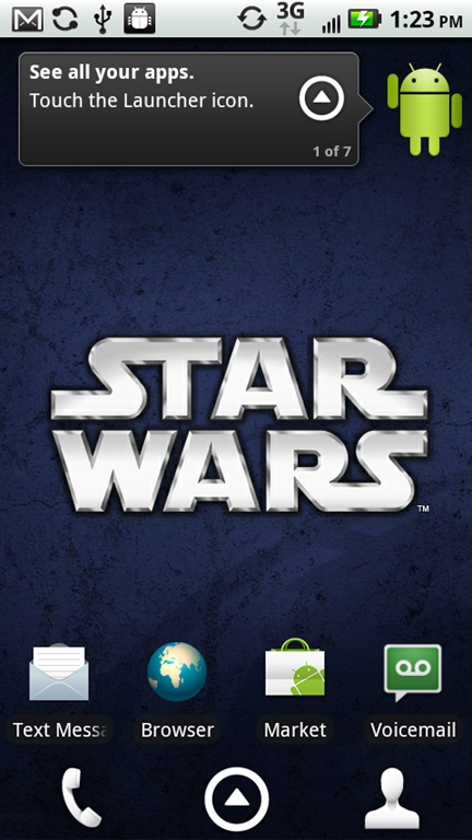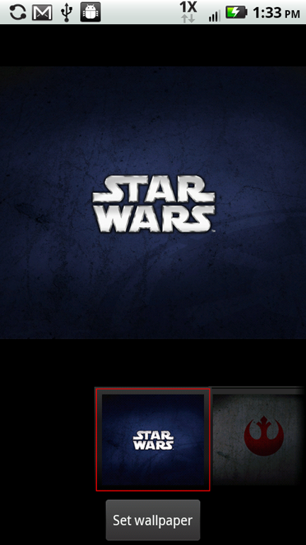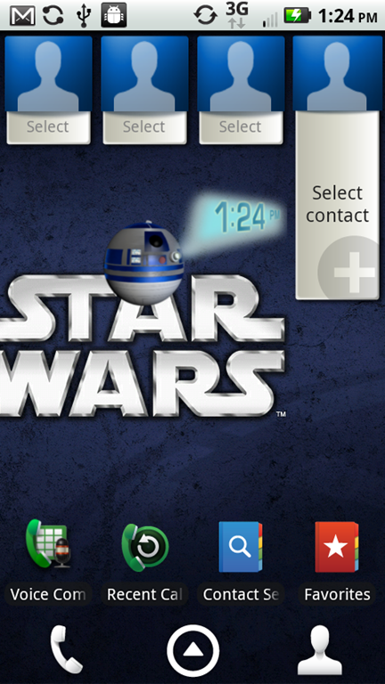The phone has the Star Wars logo set as the background, but of course you can change it with one of the many still and live wallpapers included.