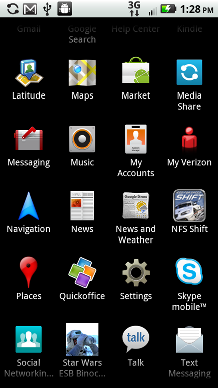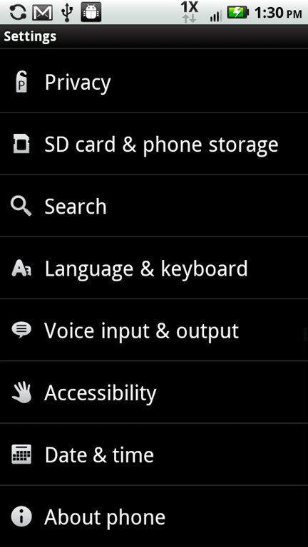 It’s Android 2.2 on the phone but it doesn’t look like it, at least not like other versions I’ve seen, I’ve come to like the colored icons on the Settings menus.