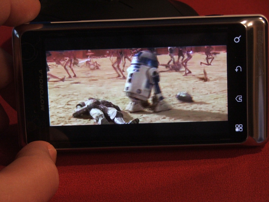 When you initially turn the phone on you’re greeted with a ‘Best of R2D2’ video that plays automatically.