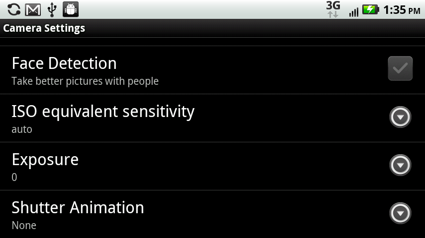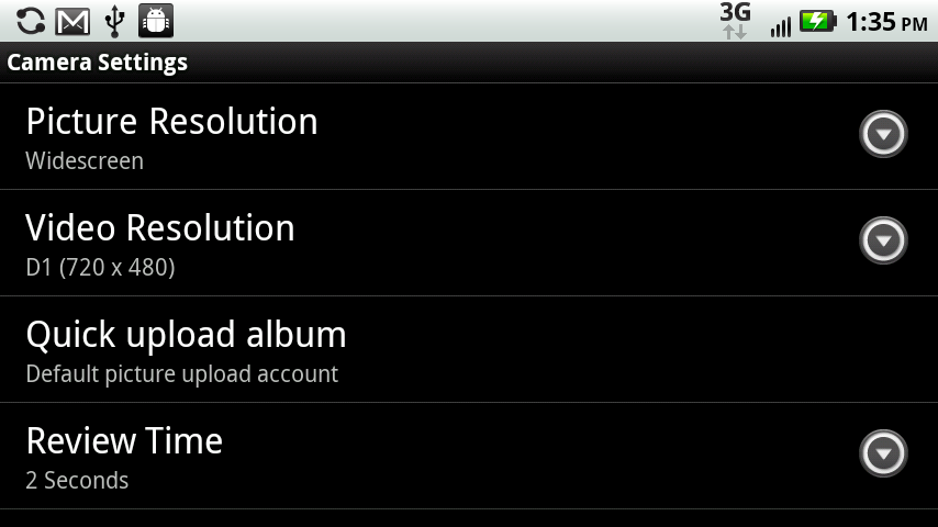 I’ve already reviewed the Droid 2, and found the camera to be decent, but here’s some of the setting as a refresher: