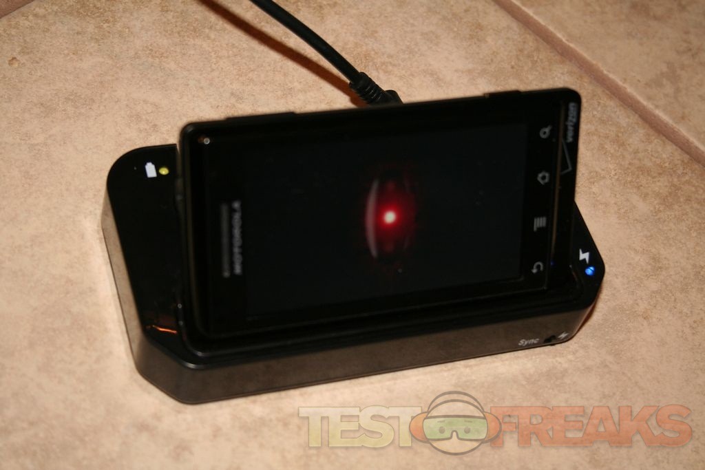 The Docking Station included directions for operation included in the package are short and to the point. It explains how to charge your Droid via the computer or with the AC adaptor. As I plugged the Droid into the docking station, it was a smooth transition. The Droid slides right into the docking station on and into the USB slot. While it sits on the station, you can also charge an additional battery. Keep in mind, not all charging stations have the second charging port. This is great to help keep a fresh battery close by. When I charged my Droid for the first time in the charger, it was complete in just 3 hours. The wall charger took five hours to fully charge. The Droid also sits on an angle which is great for when you are viewing your digital photos in a slideshow or just watching music videos.
