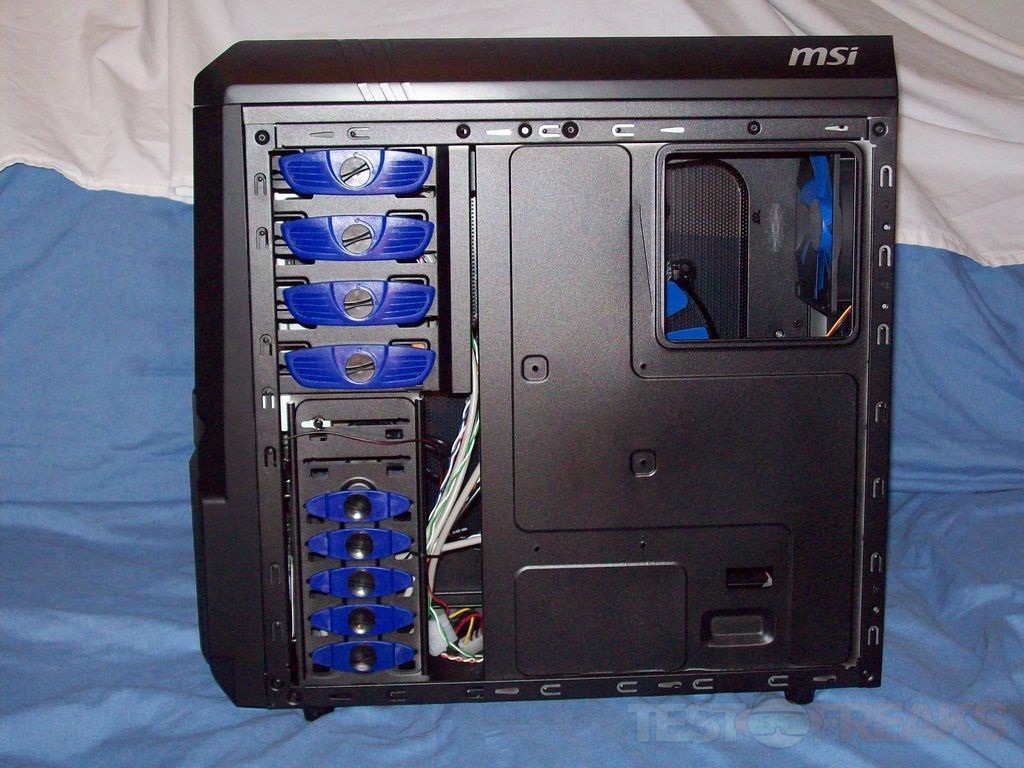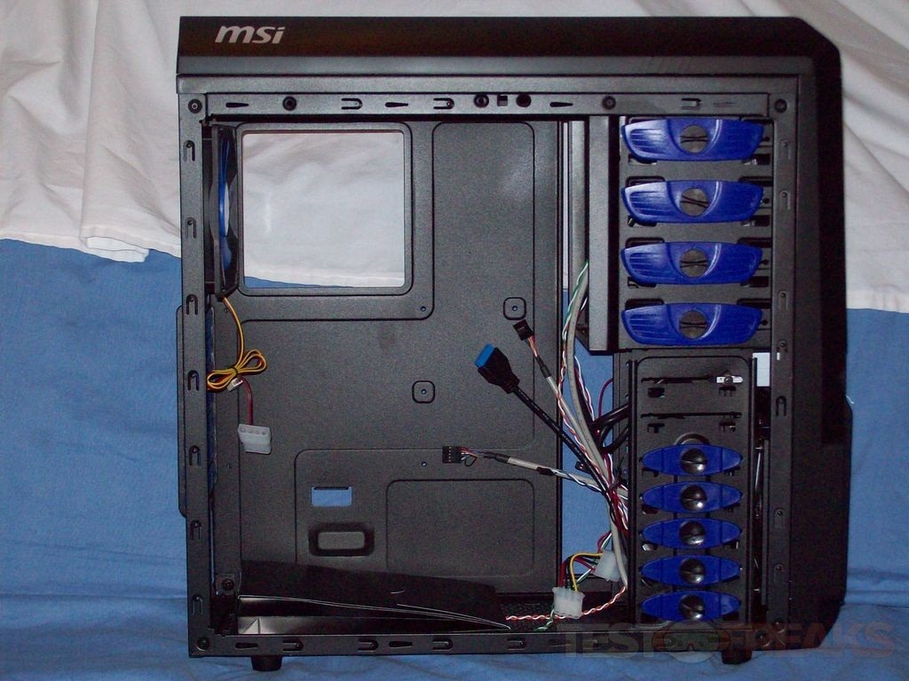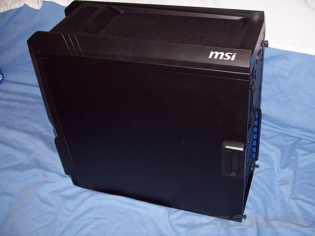 The right side of the case is just plain black. On both sides of the case you’ll see the MSI logo and on the side panels are handles to make removal easy. The case is metal and it feels study and just look good overall.