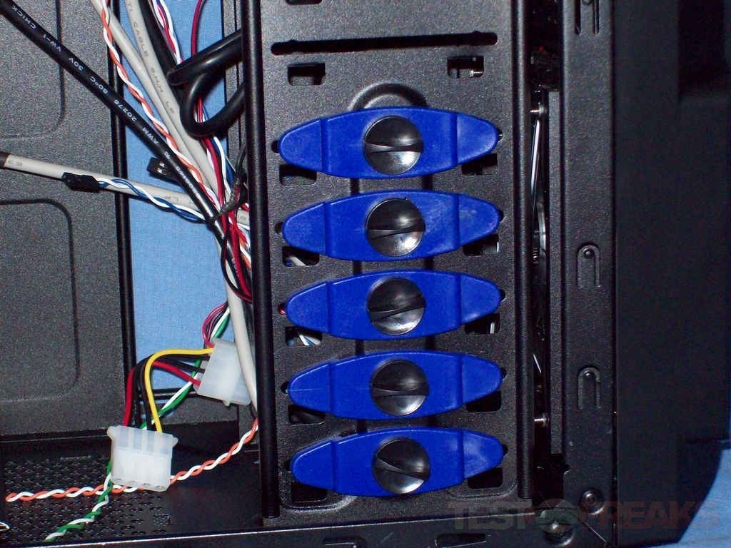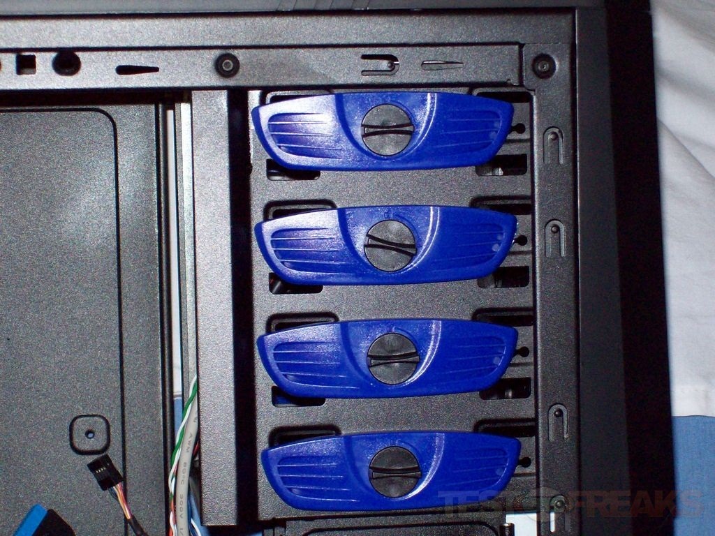 The hard drives and 5.25” devices are tool-less, on both sides you’ll find plastic lock to hold them in place.