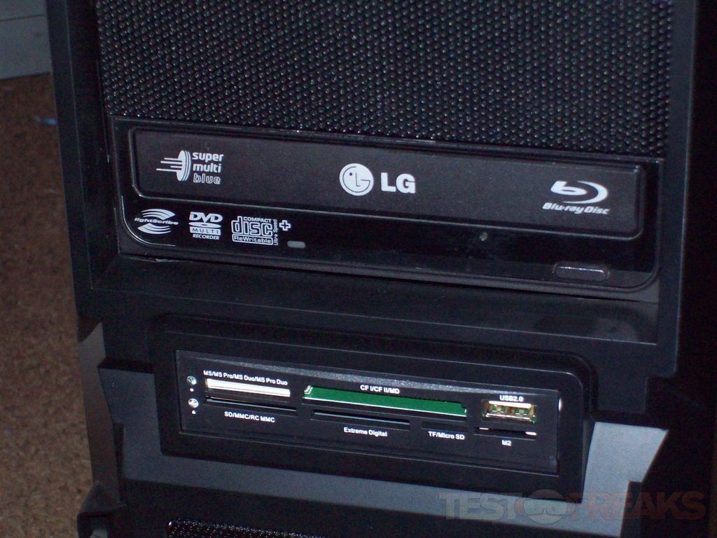 Below the 5.25” bays you’ll find the card reader already installed for you. The reader has an extra USB 2.0 port as well.