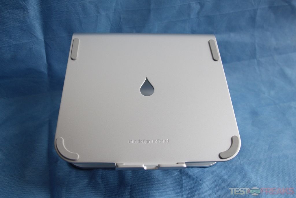 Looking at the top of the mStand we find a raindrop logo cutout in the aluminum along with the Rain Design mStand name imprinted below it.