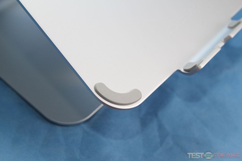 At each corner of this top surface are rubbery grips for keeping the laptop secure on the mStand. An elevated lip with two more rubber grips ensures that the laptop does not slide forward.
