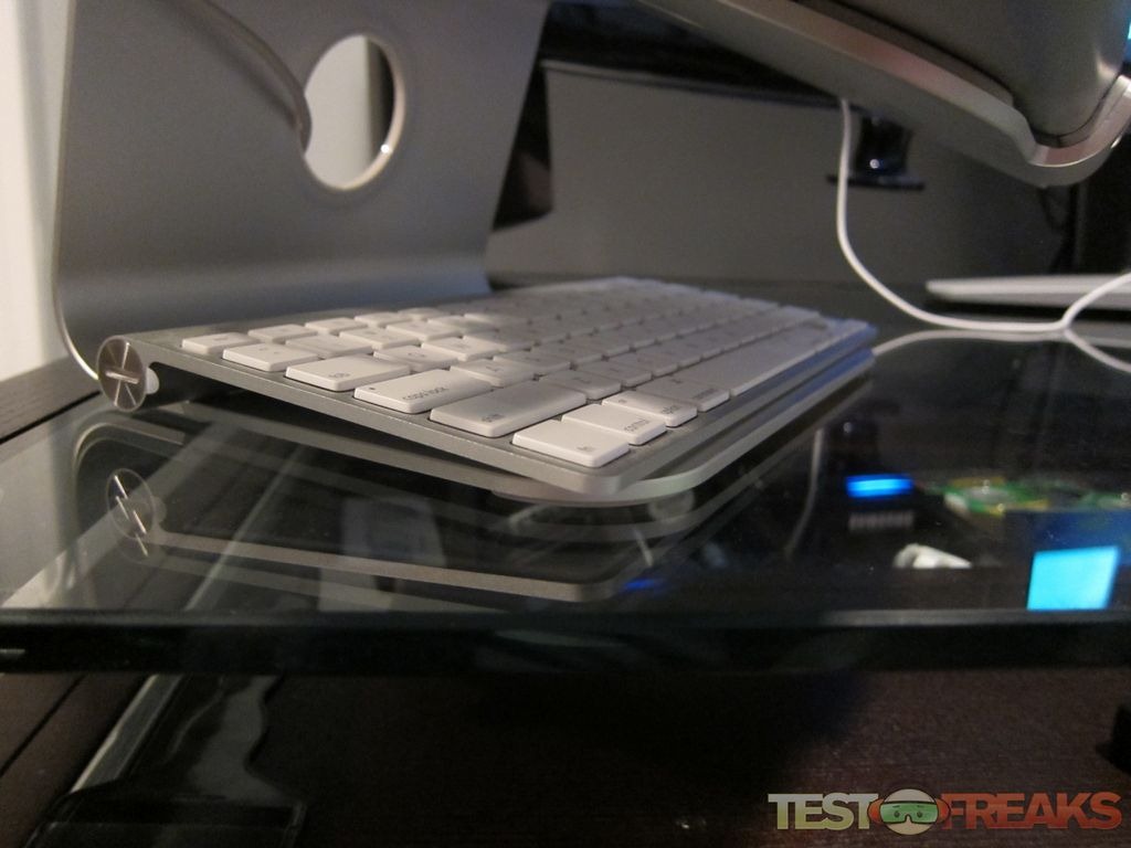 The flat surface below the mStand can be used to store one’s keyboard when not in use.