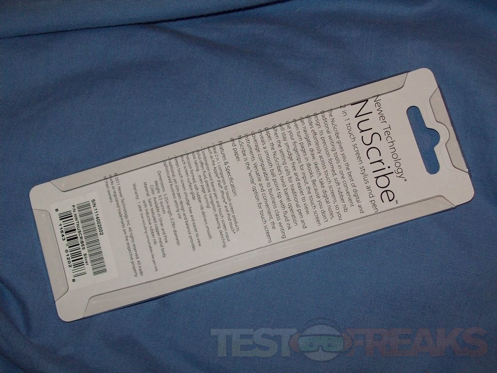 The NuScribe comes in a display style package, cardboard back with clear plastic front with lots of information on the back. The price of the NuScribe is $19.99 and you can get it in silver or pink colors, I got silver as pink just isn’t for me. The NuScribe has a clip on it with the NewerTechnoloy logo on the top end where the stylus nub is. The pen part is black ink and it’s retractable, just twist and the pen tip comes in or out.