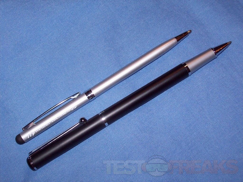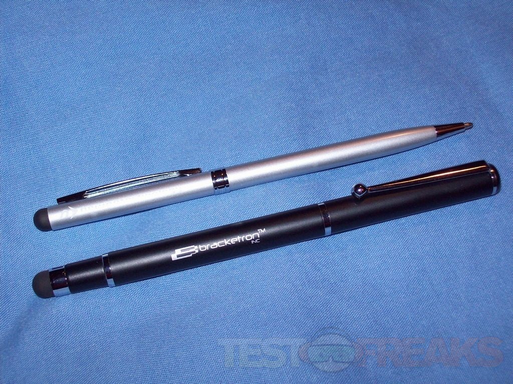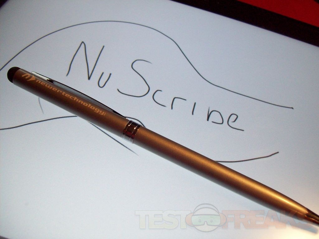 I used the NuScribe with a couple Android tablets, an Android phone and a WP7 phone as well. I also used it to write with on paper. Writing with it is nice, it’s smooth and produces a fine black line. The pen is comfortable in the hand. Using it with my tablet I used it for navigation on my devices, turning pages and even tried a bit of drawing. Writing with it on a tablet does take a bit to get accustomed to, but with practice it works well. A little while ago I reviewed the Bracketron Style-iT 2-in-1 Stylus and it’s a little bigger than the NuScribe. I’ve used both quite a bit and I found I like the NuScribe better, it’s smaller and just feels more comfortable to me. On the other hand though the Bracketron does cover the stylus tip when you’re using the pen, this is good and bad. It can protect it, but it’s not as easy as the NuScribe, you just flip it over and use it as a stylus. Not that big of a deal I guess, guess it’s your preference.