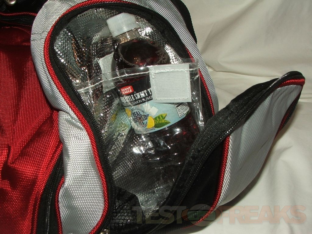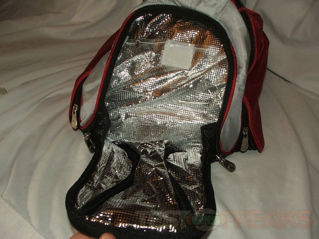On the other side of the bag is actually a cooler, it’s lined with insulating material to keep your food and beverages either hot or cold. The flap expands a bit actually so you can fit a lot in there, at least more than it looks like.