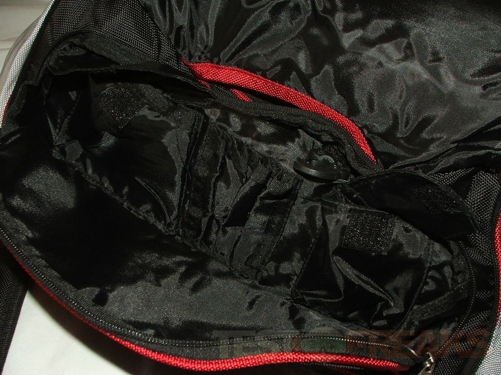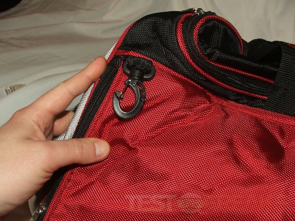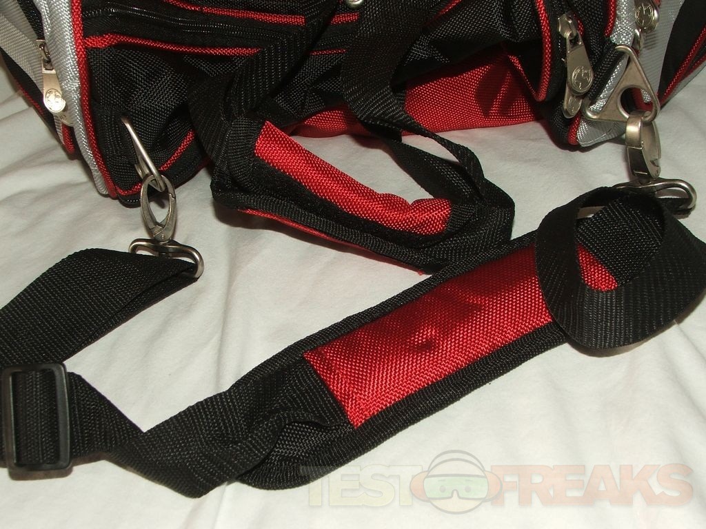 The first thing that you’ll notice is the bag, being empty is heavy, it weighs 4lbs when empty. You can get it is several colors, but I got the red version which also has black and gray mixed in. The construction seems to be very sturdy and the top is water resistant.